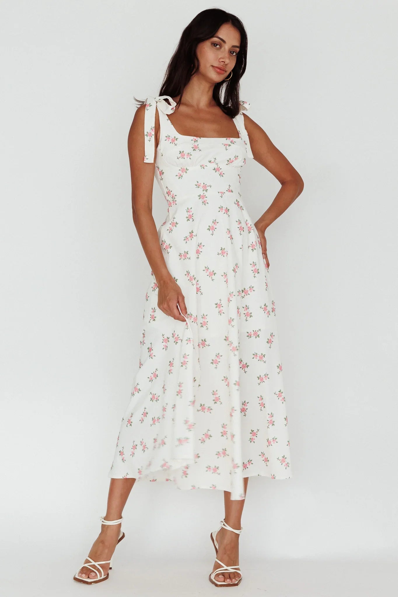 Our gorgeous Mathilda midi dress is perfect for any occasion! It features tied shoulder straps and a feminine floral print. Whether it's a picnic with your love or birthday brunch with your girls, you'll feel like a princess!